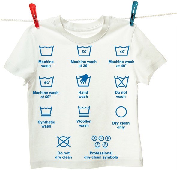 Washing Symbols and Labels on Clothes Explained | Ariel What do the washing labels on clothes labels mean? This group of UK washing symbols helps you decide if your clothing is safe to wash in your washing machine, and which setting, and what temperature you should use. It is generally depicted as a bucket filled with water (except for the 'Do not wring' symbol).